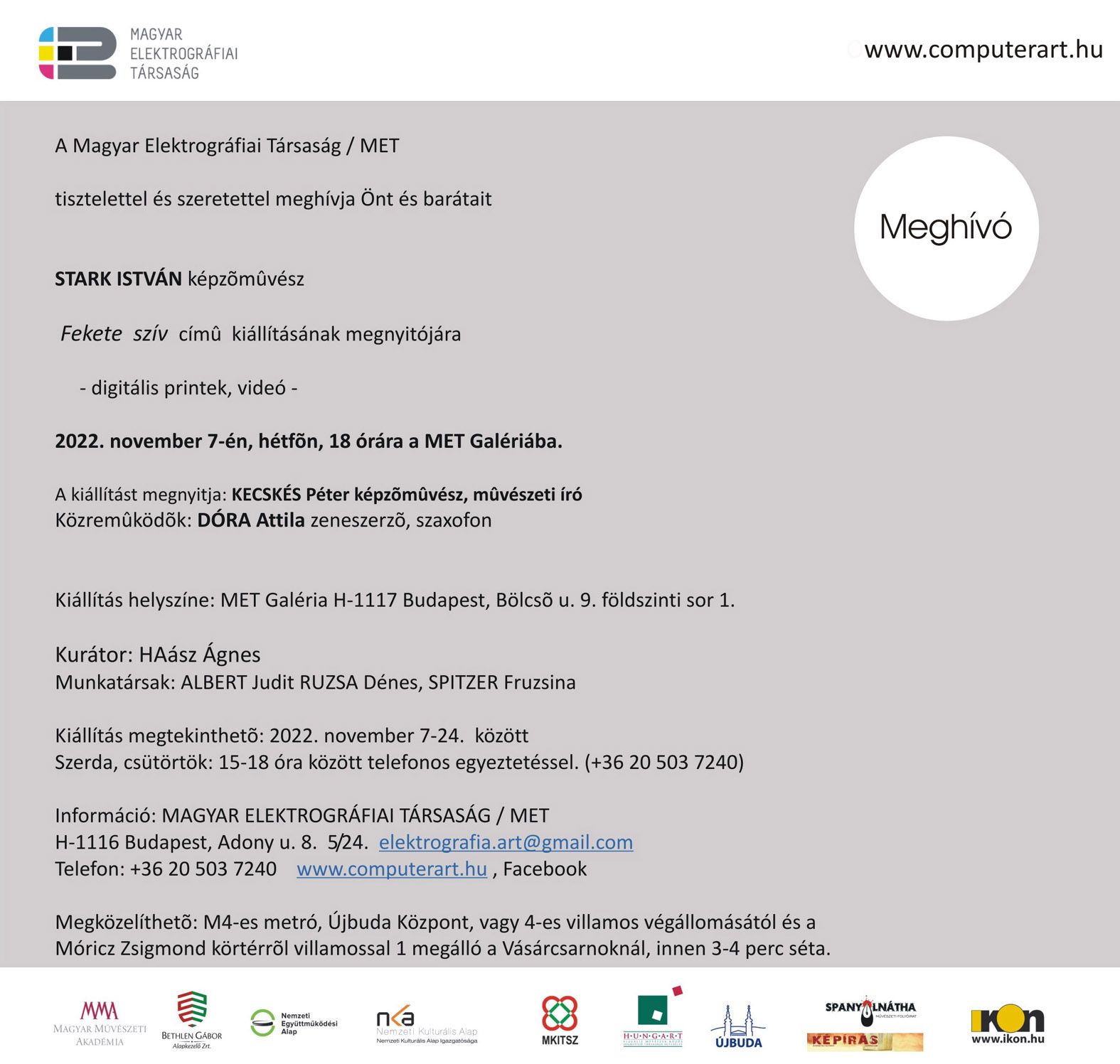 A Magyar Elektrográfiai Társaság 2024. évi működési és művészeti programjai szakmai megvalósítását a 2024. évben a Magyar Művészeti Akadémia támogatta.