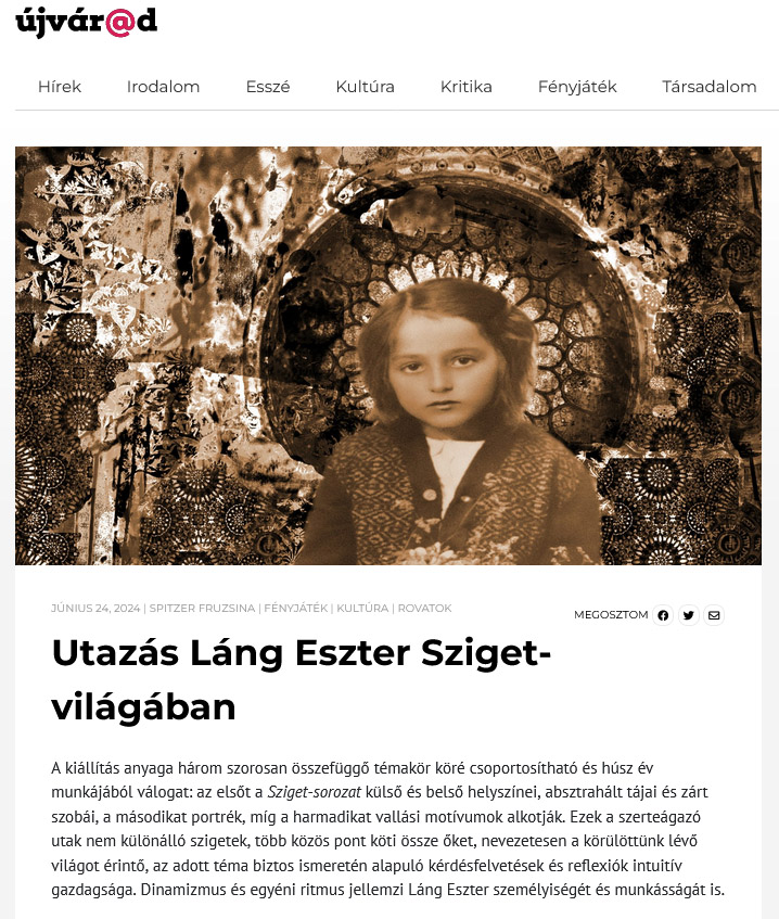 Spitzer Fruzsina cikke olvasható az Újvárad folyóirat Fényjáték rovatában: https://www.ujvarad.ro/fenyjatek/utazas-lang-eszter-sziget-vilagaban/