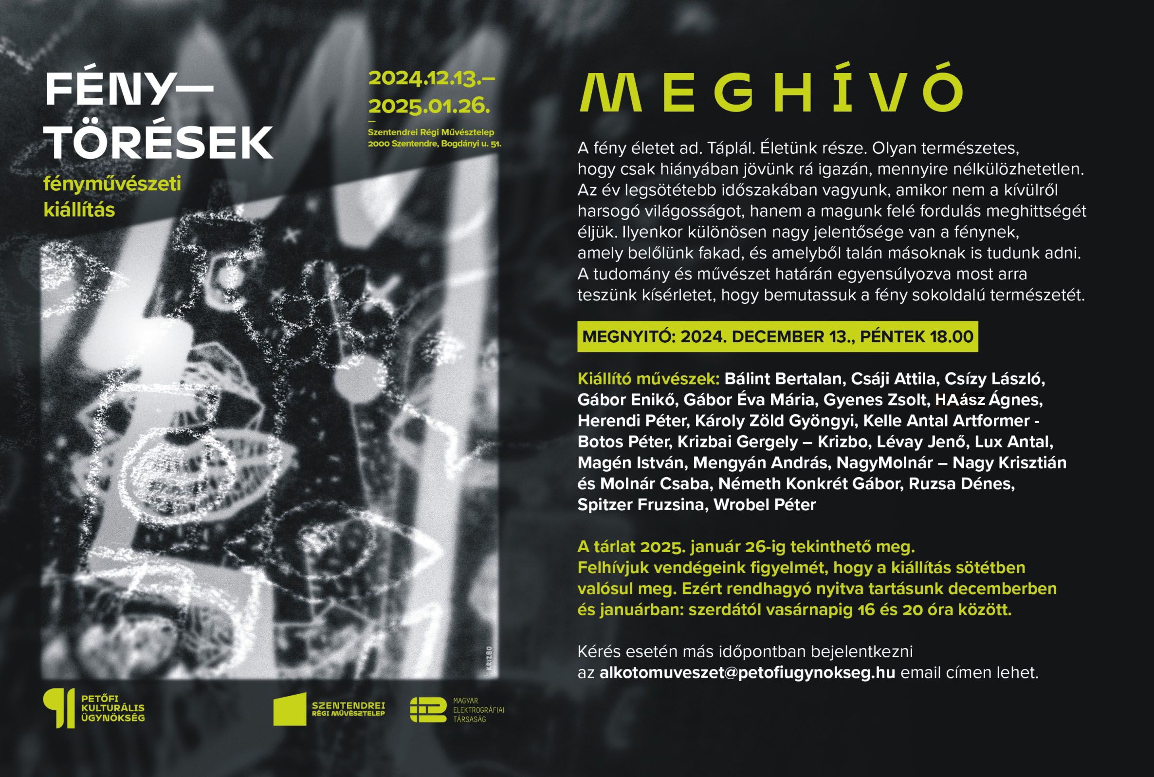 MEGHÍVÓ: FÉNY - TÖRÉSEK, fényművészeti kiállítás