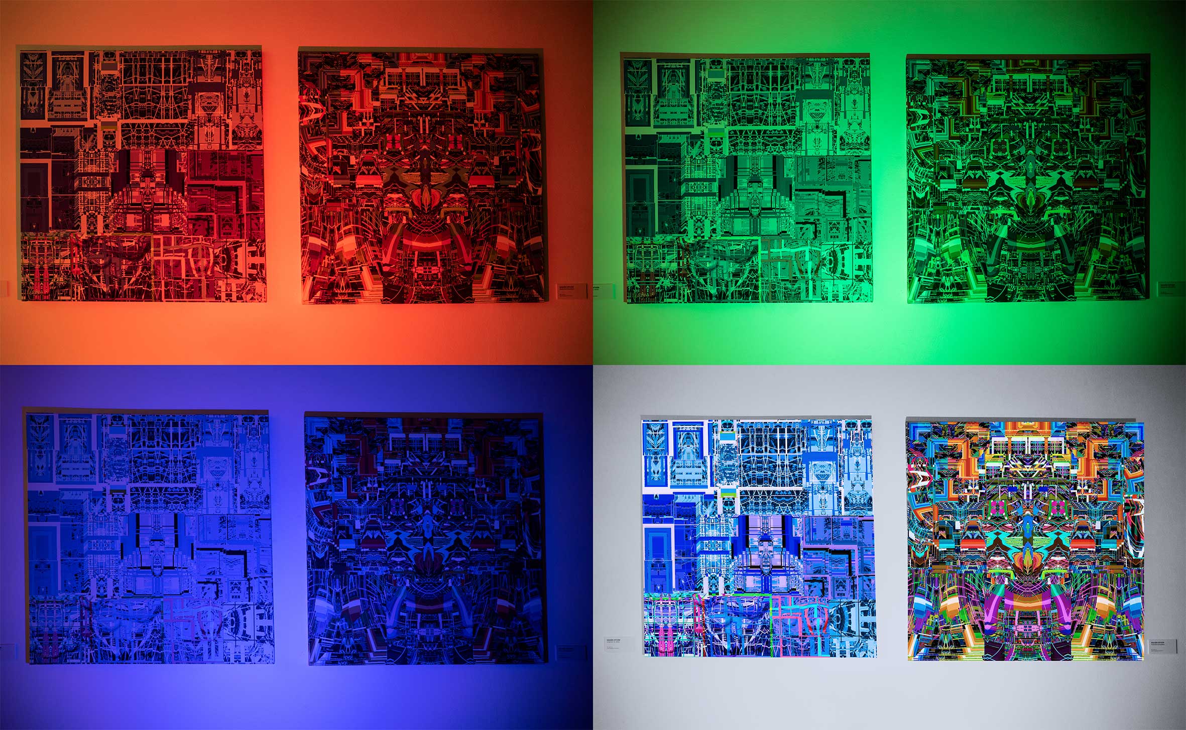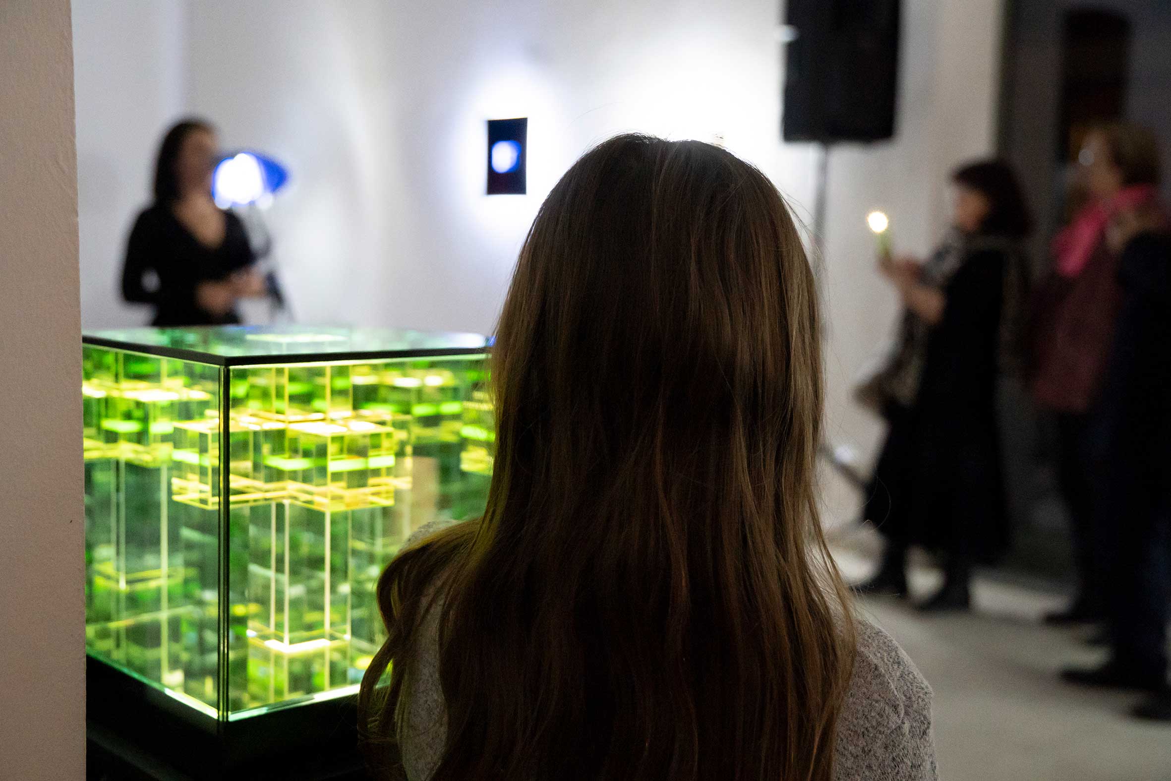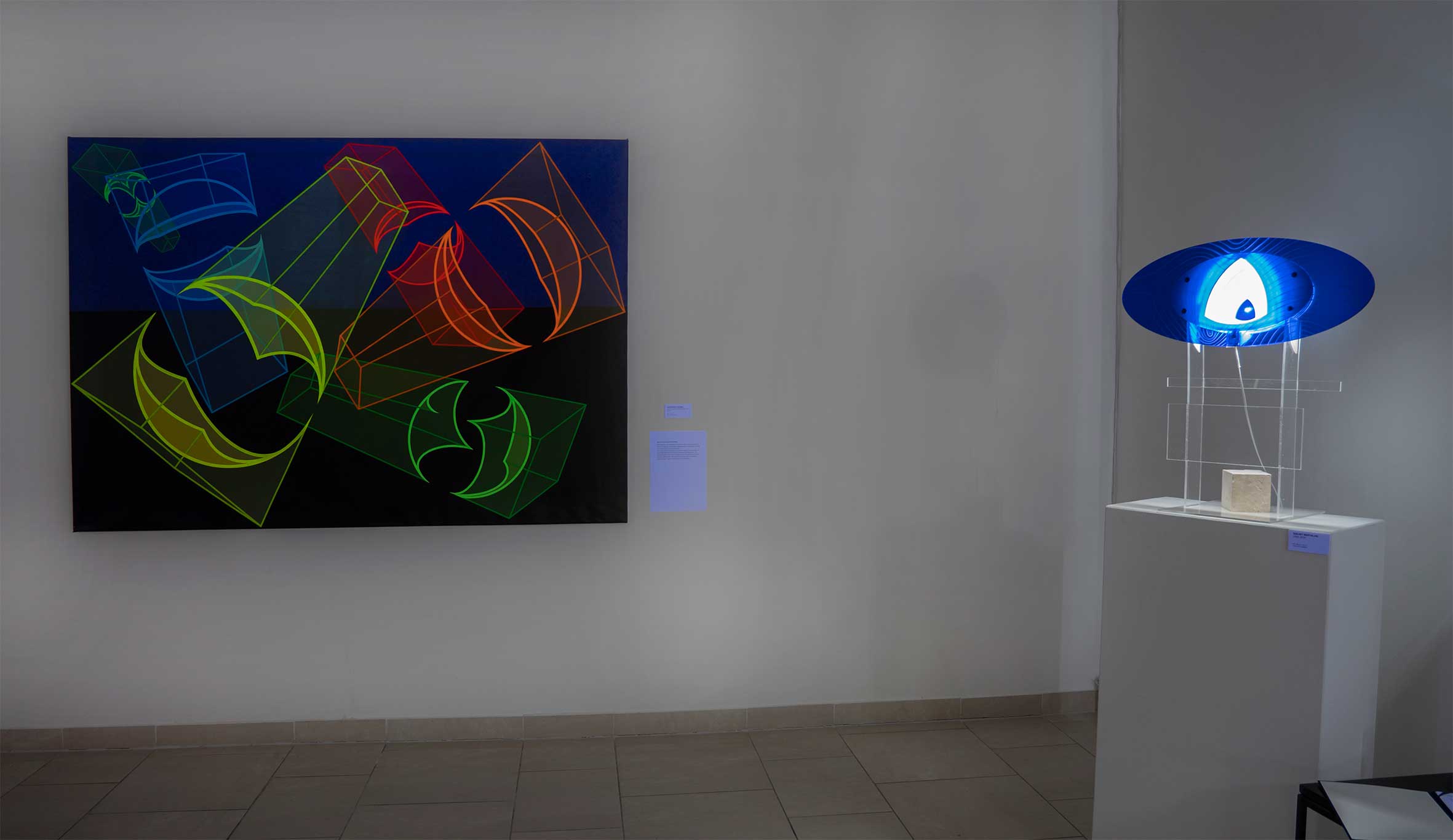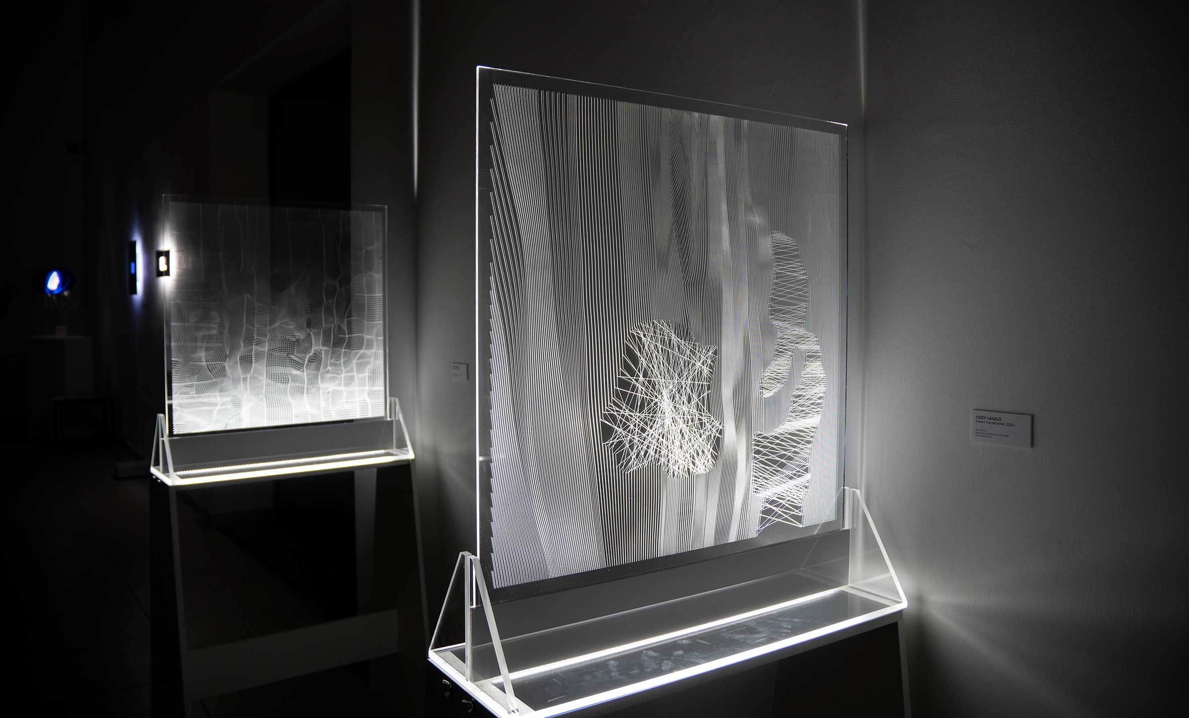 Videó, fényinstalláció, színek, hangok, világító UV-akril, lézer-gravírozás: a kiállított művek folyamatos játékba és interakcióba hívják befogadót, hiszen az alkotások mozognak, változnak, és a különböző fényekben más-más arcukat mutatják.