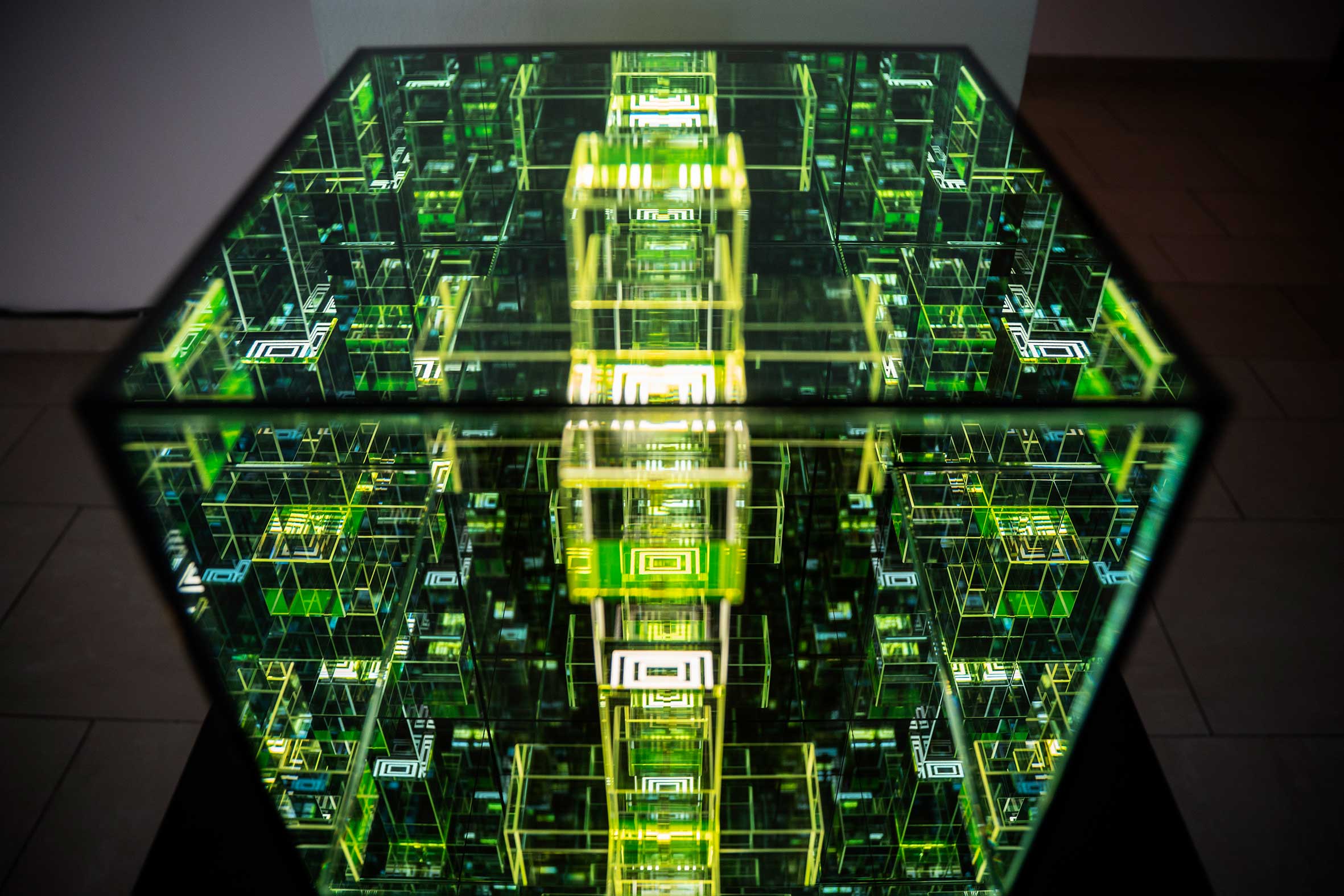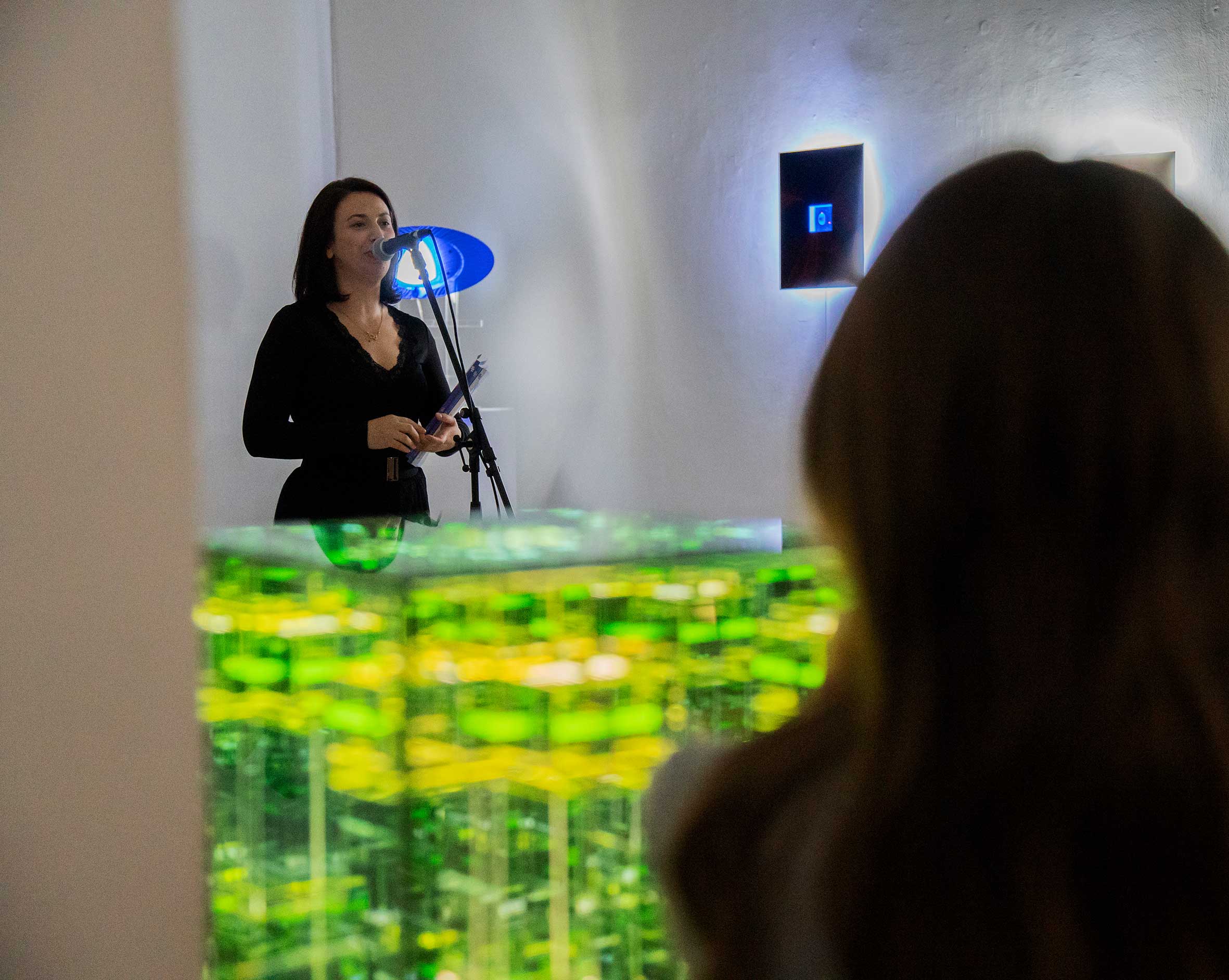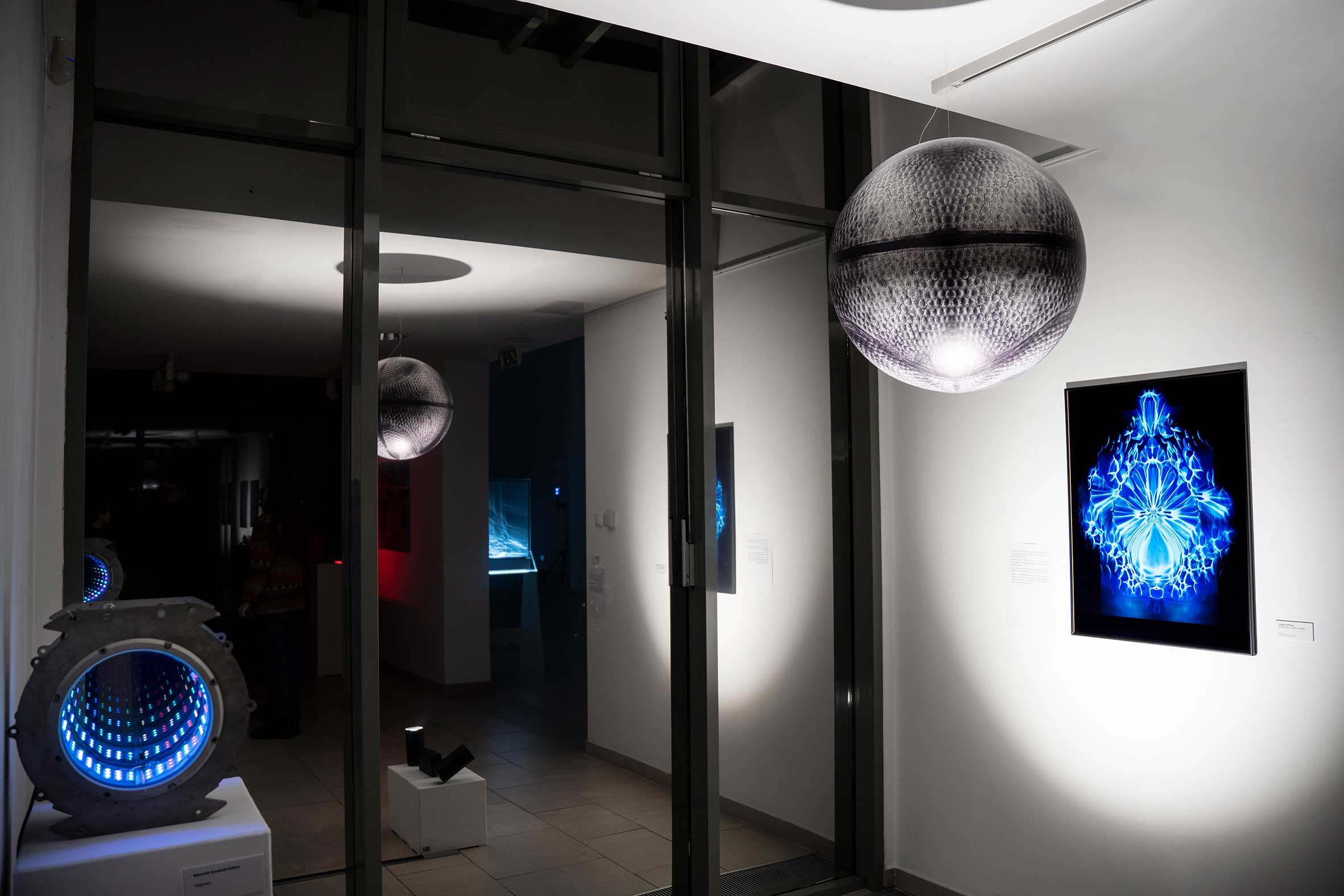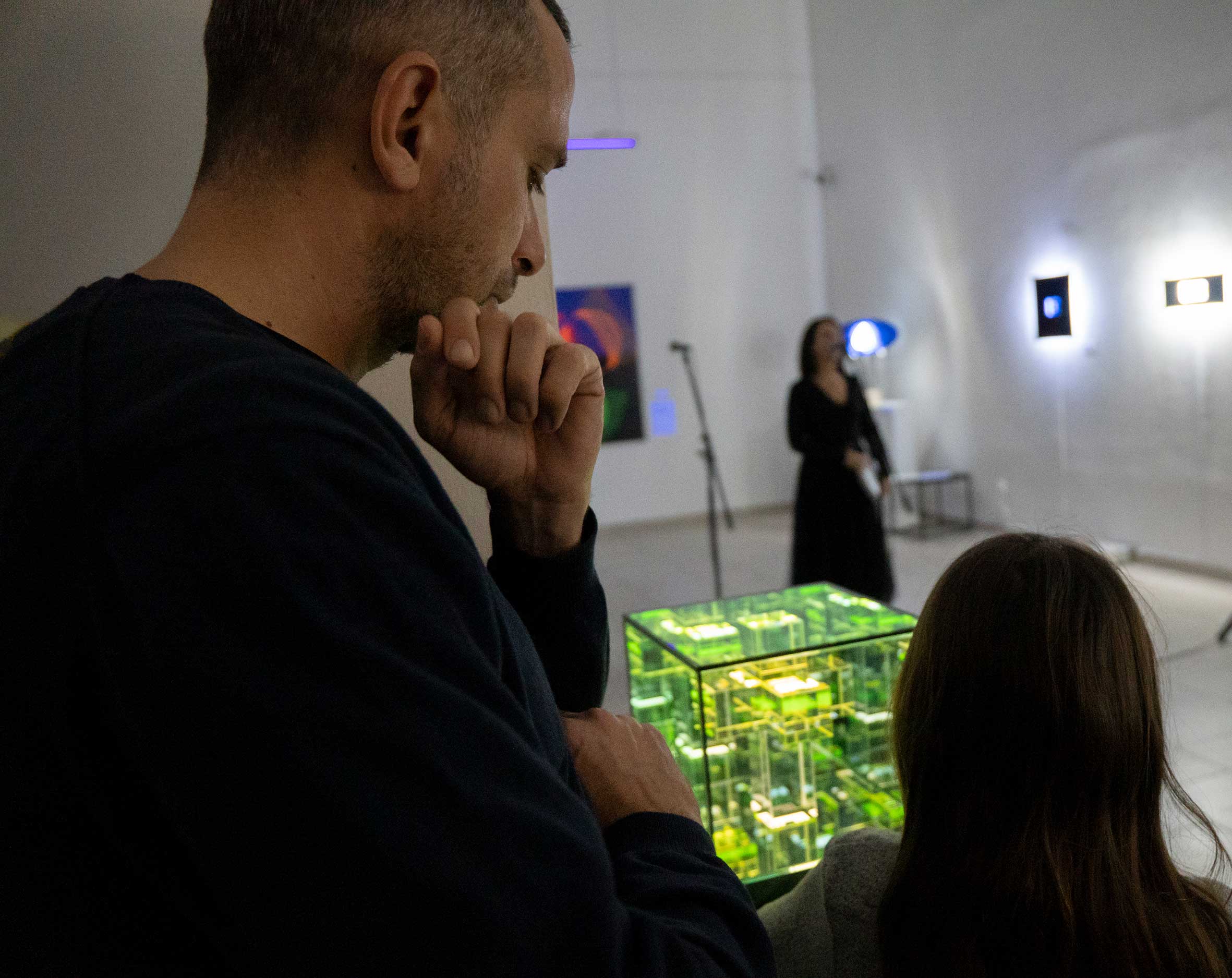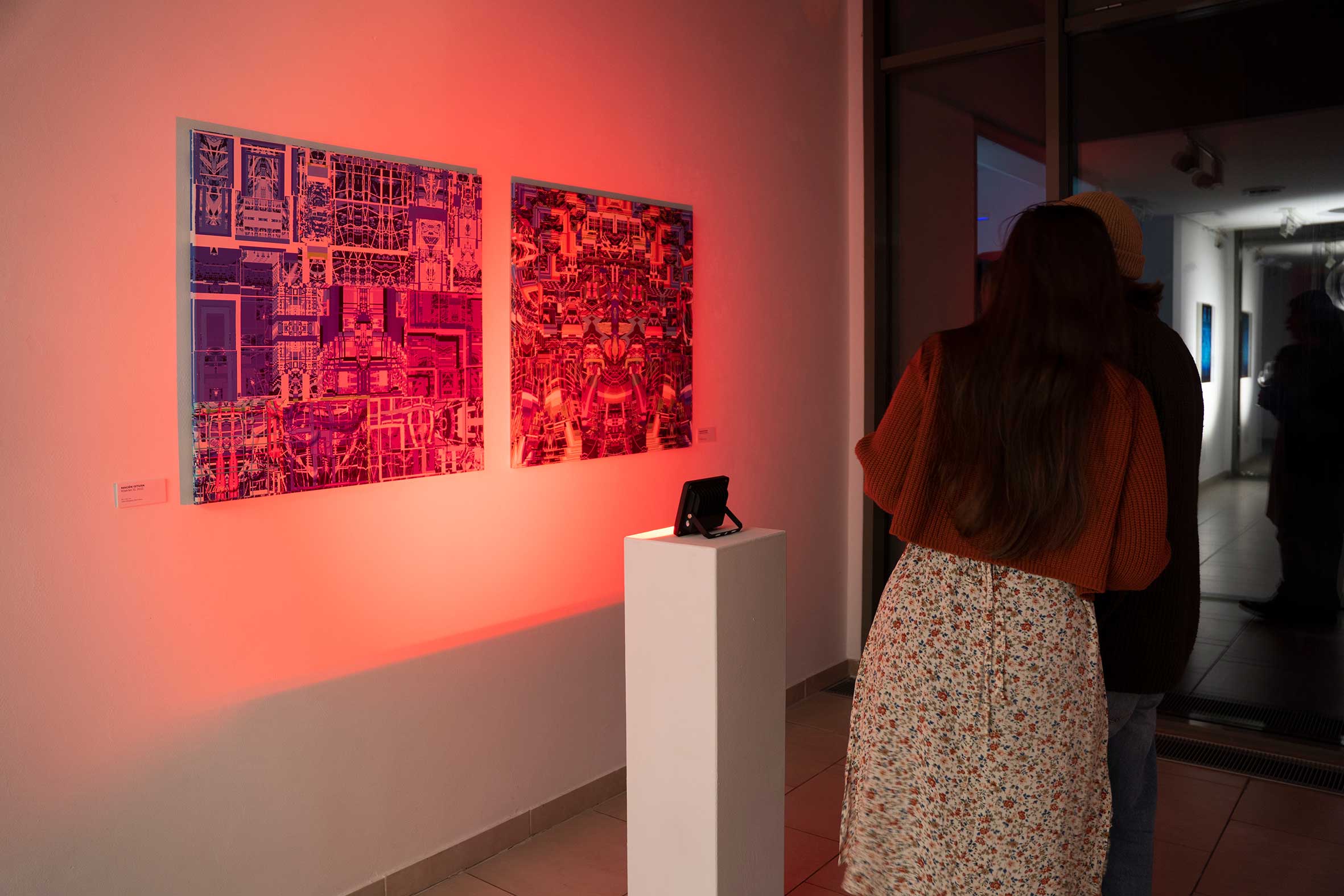 Videó, fényinstalláció, színek, hangok, világító UV-akril, lézer-gravírozás: a kiállított művek folyamatos játékba és interakcióba hívják befogadót, hiszen az alkotások mozognak, változnak, és a különböző fényekben más-más arcukat mutatják.