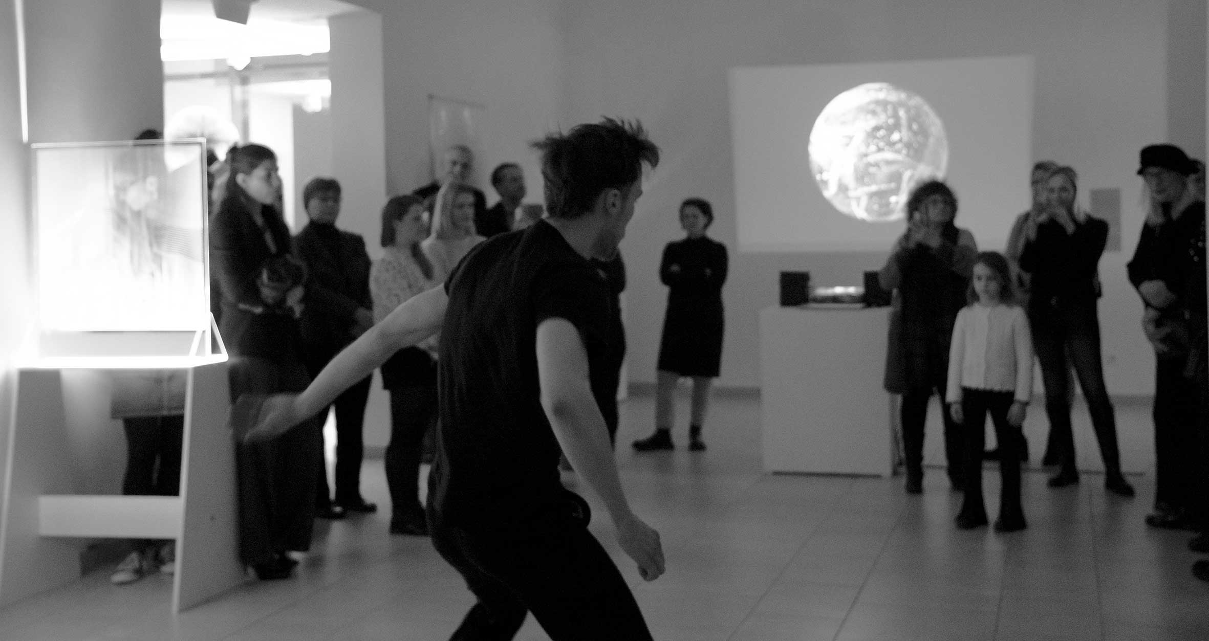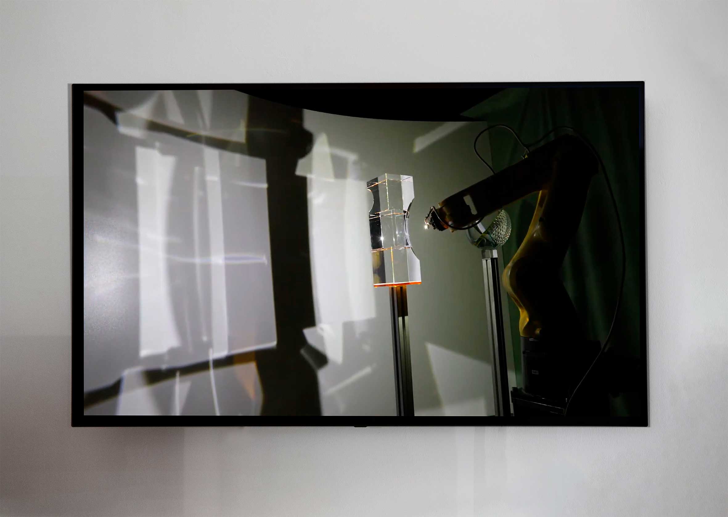 A szokatlan installáció valódi ipari robotból, és az általa megvilágított üvegszobrokból áll. Az egymással "versengő" két üveg-szobor, a robot által mozgatott fényforrás következtében, a háttéren változatos árnyékokat, vetületeket hoz létre. Az üvegek megváltoztatják a fény írányát, intenzítását, és változatos tükröződéseikkel, különböző textúrákat, színeket és becsillogásokat hoznak létre. A "mesterséges intelligenciával" rendelkező robot, hagyományos, egyszerű optikai effektusokat használva, rajongja körül a szobrokat és azok árnyékait. Ezeket vettük filmre.