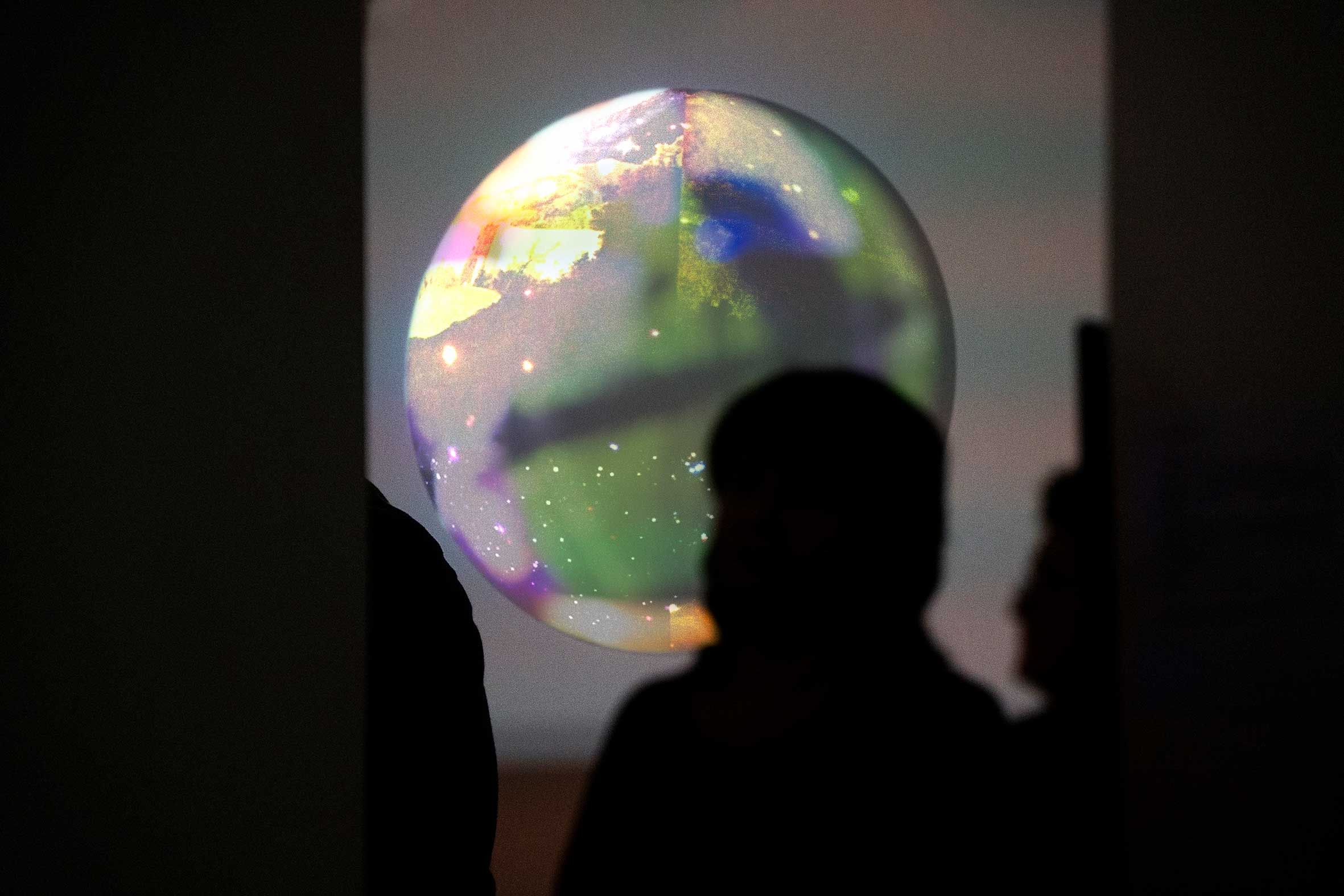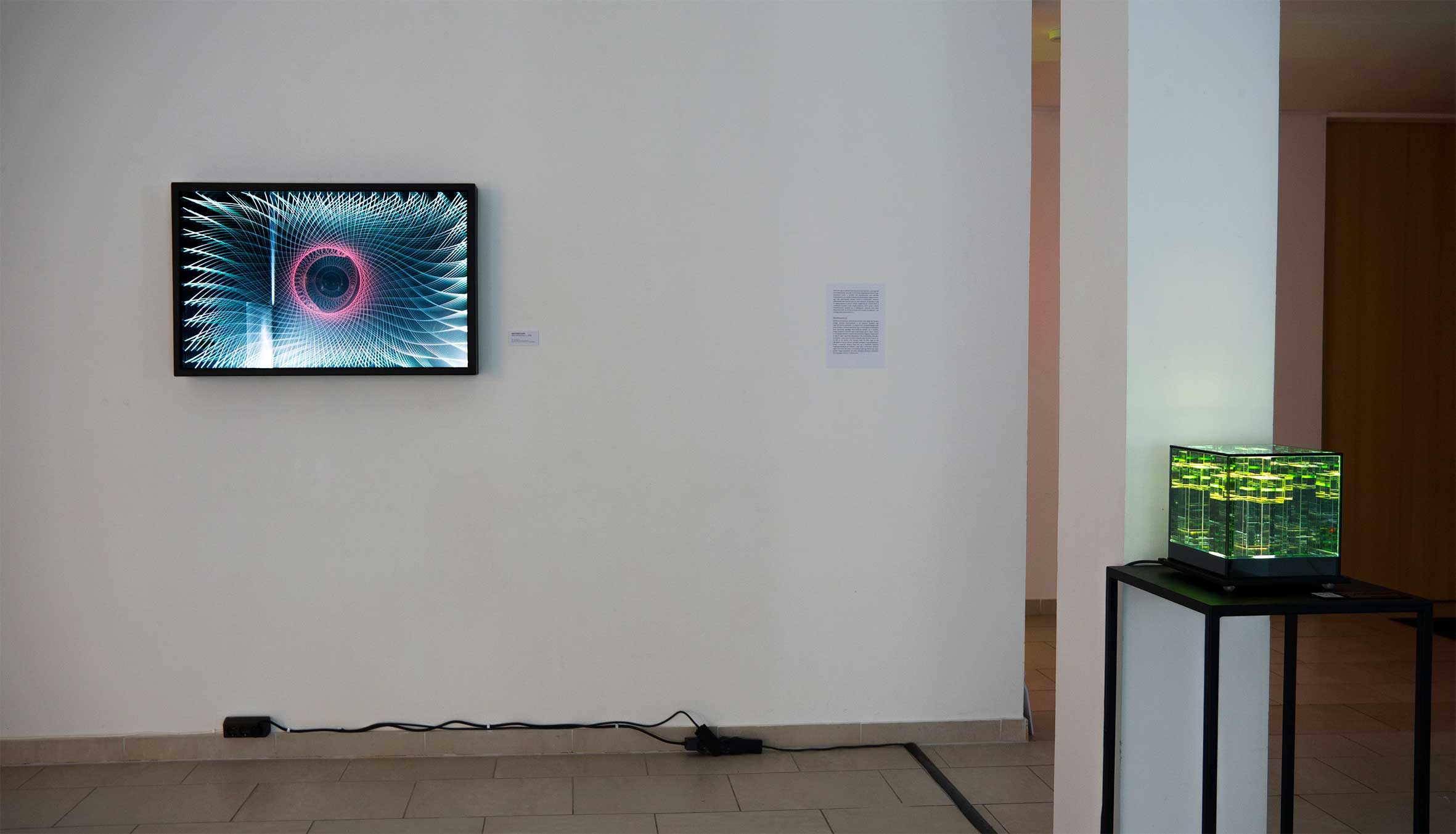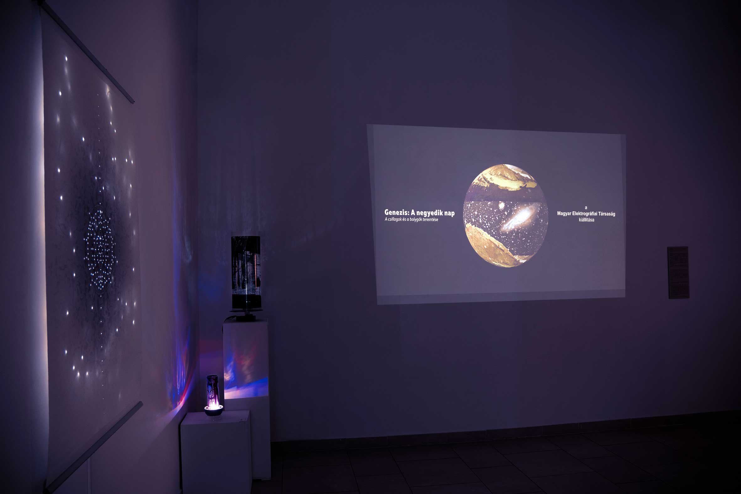 A Magyar Elektrográfiai Társaság művészeinek alkotásaiból készült animáció példája annak, hogy mind a világunkat, mind pedig annak reprezentálását technomédiumok segítségével tesszük. Bill Viola írja: „Nem hinném, hogy lehetséges lenne ma művészetről beszélni, ha nem beszélünk egyben technológiáról is.”[2] Mind a tudomány mind a művészet – és ez különösen igaz a MET alkotóira – a technika segítségével alkotnak. Az itt látható animációban a művészek adott tematikában alkotott, eredetileg önálló műveit fűztük össze koherens mozgóképpé. A kiállító művészek a legváltozatosabb formában közelítettek a Genezishez, világunk keletkezésének történetéhez. Az eredetileg fekvő formátumban készült műalkotásokat egy gömbformára feszítettük, ahol a folyamatos mozgás következtében új dimenziók nyíltak meg.