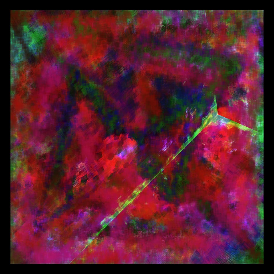 Vízszintes és függőleges hullámozások ütköznek a kép középső részében. Az ütközések után részlet gazdag kavargás alakul ki. A játékos mozgékonyság és a nyugalmat, tekintélyt sugárzó lassú lengések egyaránt megfigyelhetők. A stabil konstrukciót a legördülő képződmények bontják fel. Kifelé haladva a rendezettség helyreállását érzékeljük. Lejátszódott egy történet a végtelen térben.